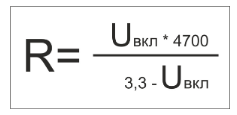 Включение регулятора осуществляется управляющим сигналом, значение которого отлично от нуля. Для расчета нужного значения сопротивления, которое нужно установить между контактами 1 и 4 вместо перемычки, используйте следующую формулу для расчета.