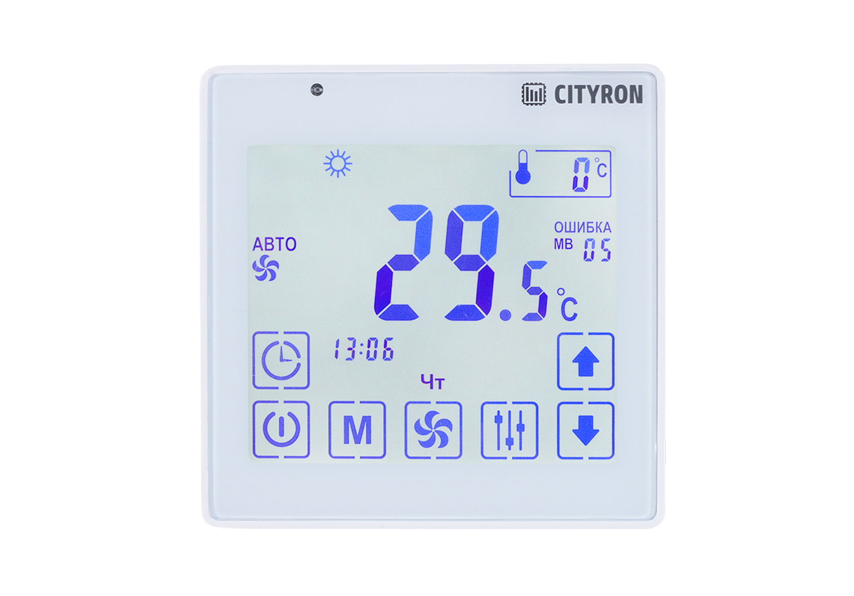 - Переключить режимы работы: Охлаждение, Нагрев, Вентиляция, Автоматическое поддержание заданных значений;